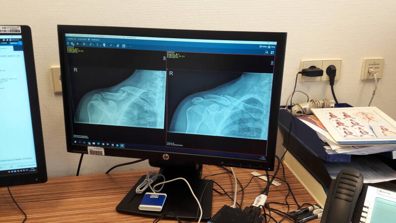 Daar ben ik weer. Het is nu 6 weken geleden dat ik mijn sleutelbeen brak en vandaag heb ik in het ziekenhuis weer een rőntgenfoto laten maken. Ik hoopte daarop te zien dat mijn breuk was geheeld, maar dat viel tegen. De breuk is op de foto nog steeds open. De arts zei dat het wel 16 tot 24 weken kan duren voordat de breuk geheeld is. Dat is wel even anders dan 6 tot 8 weken die ik dacht en had gelezen op internet. Dit is ook wel een zware pil voor mijn werk, want op 20 september had ik mijn eerste gesprek met de bedrijfsarts. Het was een fijn gesprek, maar toen ik later de Analyse las zag ik dat ze verwachten dat ik per 6 oktober a.s. weer volop inzetbaar zou zijn. Ik las hierin ook dat er op 7 oktober een vervolgafspraak zoe zijn. Ik heb hier geen mail of bericht verder over gehad. Dit heb ik ook doorgegeven aan de teamleider die ik vandaag gesproken heb. We hebben op zijn verzoek afgesproken om het gesprek van 7 oktober af te wachten. Ook mijn aangeboden thuiswerk wilde hij niet op ingaan.